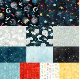 Collection Description: Welcome to the out-of-this-world adventure of the To The Moon Collection by P&B Textiles, where the magic of space and celestial wonders come alive in every fabric! These fabrics are like a cosmic journey, with designs that capture the awe-inspiring beauty and mystery of the universe. Each pattern is like a starry discovery, filling your creative projects with a touch of intergalactic charm. Embrace the infinite possibilities of space-inspired designs and create captivating masterpieces with the To The Moon Collection!