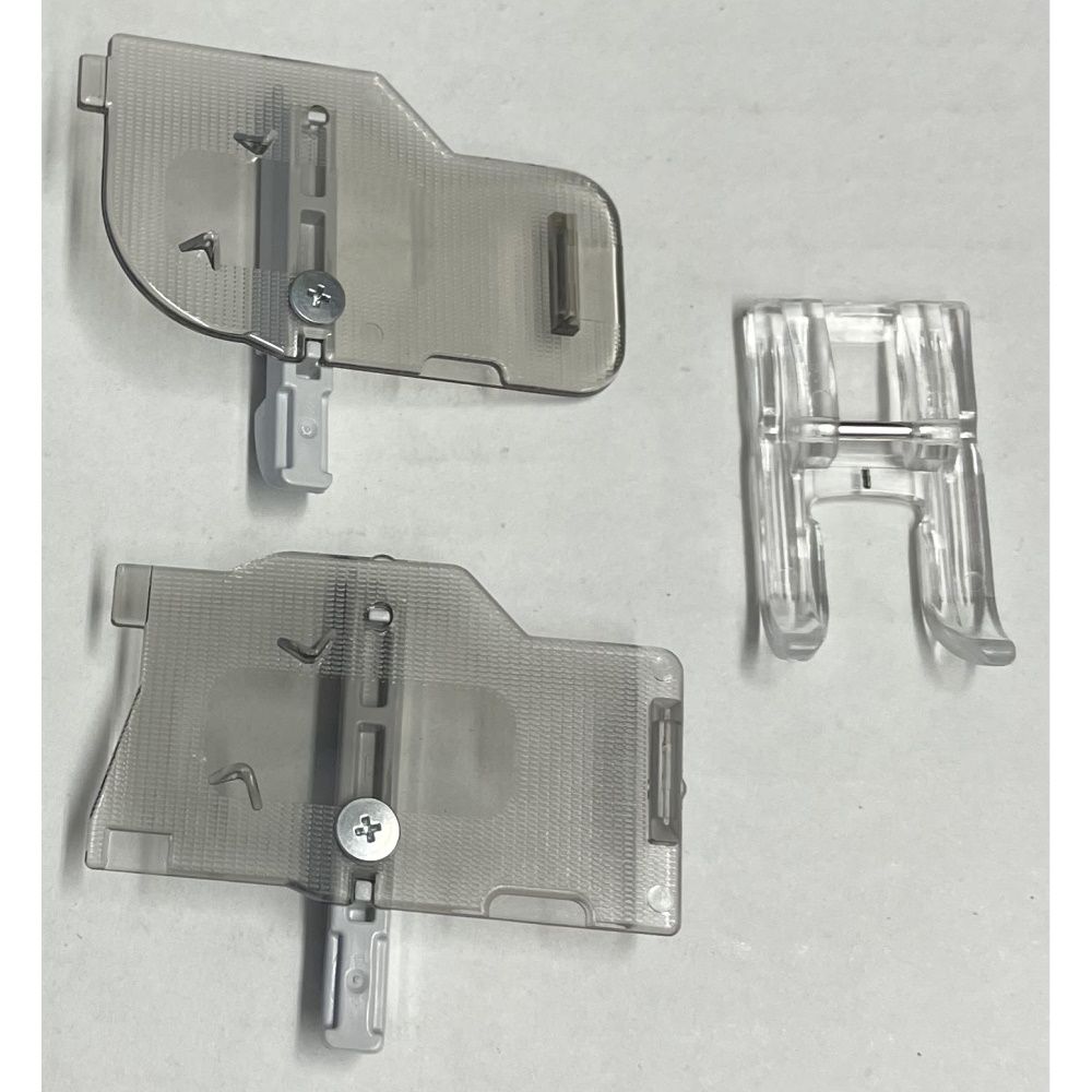 Description: Attach the Brother SA220 Spanish Hemstitch Foot to one of the two included models of open toe foot to join ribbons and strips of fabric using decorative stitches. The pieces are not joined together edge to edge but with a space between the pieces which creates an open, lacey look.