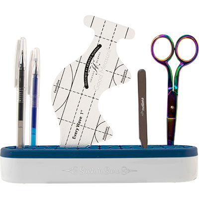 Description: Easily store marking tools, scissors, stilettos, rulers, even brushes and small rotary cutters, in an easy-to-grab upright position. The silicone pockets are smooth and offer a sturdy grip and it is also simple to clean. Available in three colors, collect them all for your sewing room, vanity and home office!