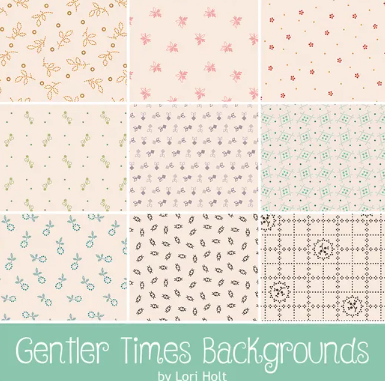 Collection Description: Gentler Times by Riley Blake Designs is a sweet and nostalgic collection inspired by days gone by. Featuring delicate florals, soft stripes, and charming vintage-inspired prints in soothing pastel tones, it’s perfect for creating quilts, home decor, and heartfelt keepsakes with a timeless, cozy feel.