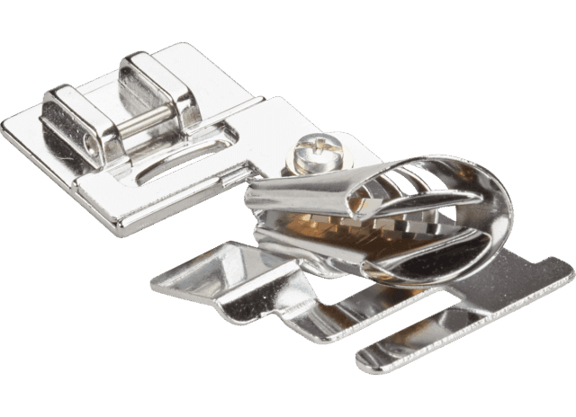 The Binder Attachment binds fabric edges using pre-folded or non-pre-folded bias tape, producing a finished width of 5–7 mm. It can be sewn using either utility or decorative stitches.