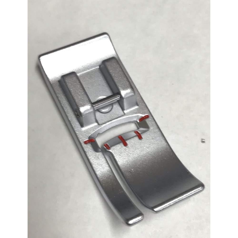 Description: The Brother SA104 Sewing Machine Bi-Level Presser Foot Left is a snap On Brother Foot for 7mm Zig Zag machines.  This Brother SA104 Sewing Machine Bi-Level Presser Foot Left is an original Brother accessory.   This foot leaves a 1.5mm, 5mm, or 8.5mm seam allowance.