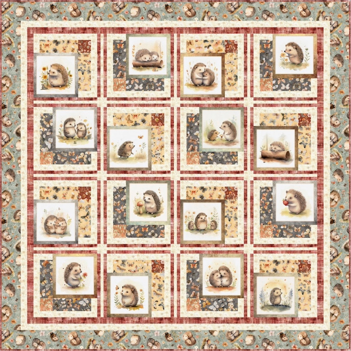 FRAMED CUTIES QUILT KIT- FEATURING HEDGEHUGS