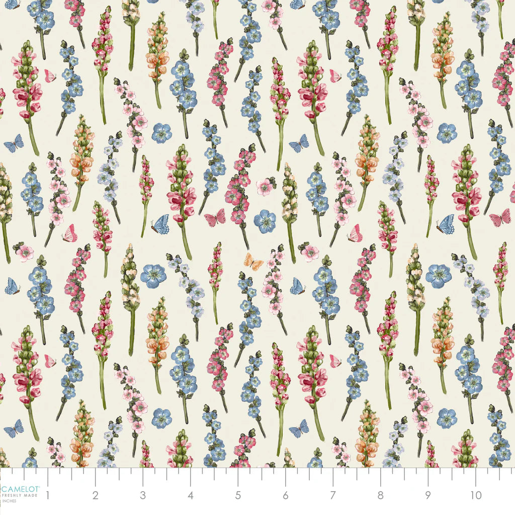 Description: Playful cats, delicate butterflies, and blooming flowers come together in the Secret Garden quilting cotton collection by Pam Vale. Inspired by vintage illustrations, this collection features a soft pastel palette and painterly details that celebrate the graceful beauty of butterflies in a whimsical, hidden garden.