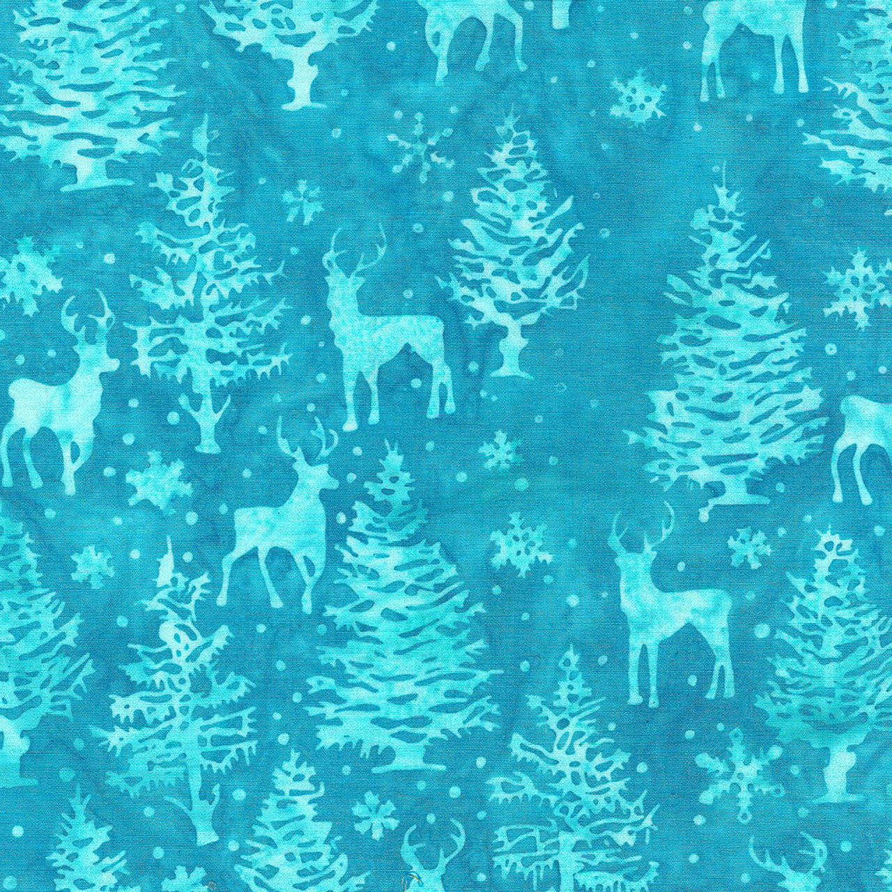 Island Batik - Lumin Fabrics- Bright Tidings Trees and Deer Teal Sur - fabric