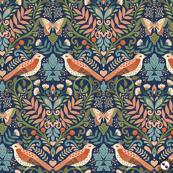 Collection Description: Luxe by Katie Gordon for Makower contains all the opulence and dramatic imagery that we like in her patterns. The concise collection features blowsy blooms and coordinating tiny florals, seedheads and the most glorious bird print, reminiscent of stylised arts and crafts designs. All the prints have golden metallic details, even richer than in the photos (but without being showy). And the bonus is that our favourite Linen Texture collection, now has additional colours with a metallic details, in cream and navy, ideal as a coordinate.