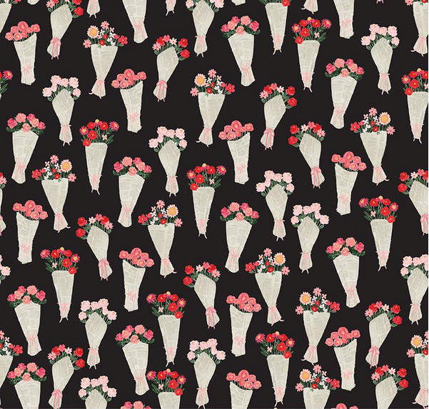 My Valentine Bouquets Black Yardage