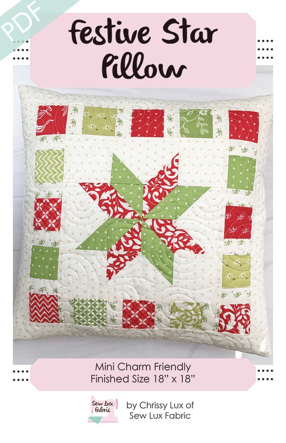 Description : "Festive Star Pillow" Quilt Patten by Chrissy Lux is included with the kit.