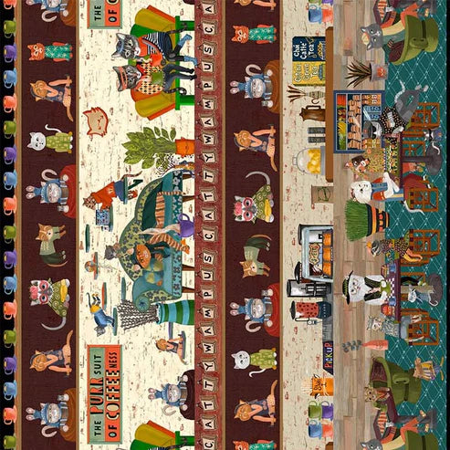 Purrsuit of Coffeeness The Cat Cafe DDC12489-MULT-D Yardage