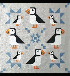 Add coastal charm to your next project with the Puffin Peaks Quilt Kit, featuring modern geometric patterns inspired by puffins. Soft light blue, navy, white, and grey evoke rocky shores and open skies, while clean lines and playful motifs bring a fresh, contemporary feel.