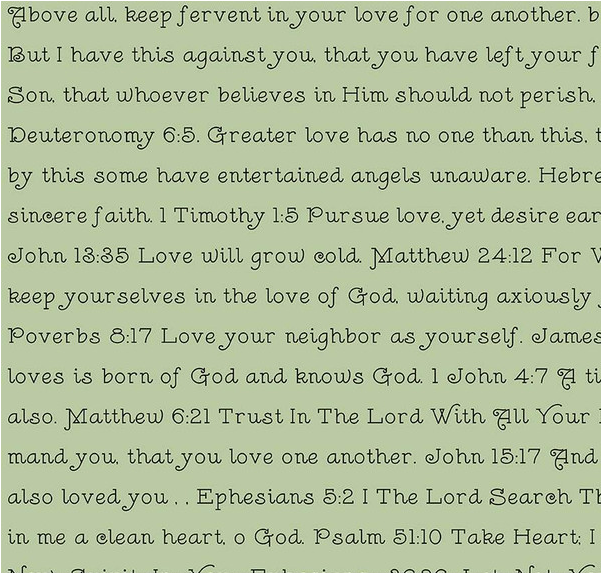 Take Heart Love Scripture Green Yardage